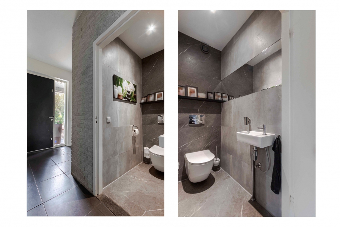 De woning verwelkomt u met een ruime entree waarin de garderobe, het vernieuwde toilet, de meterkast en de trap naar de verdiepingen zich bevinden.