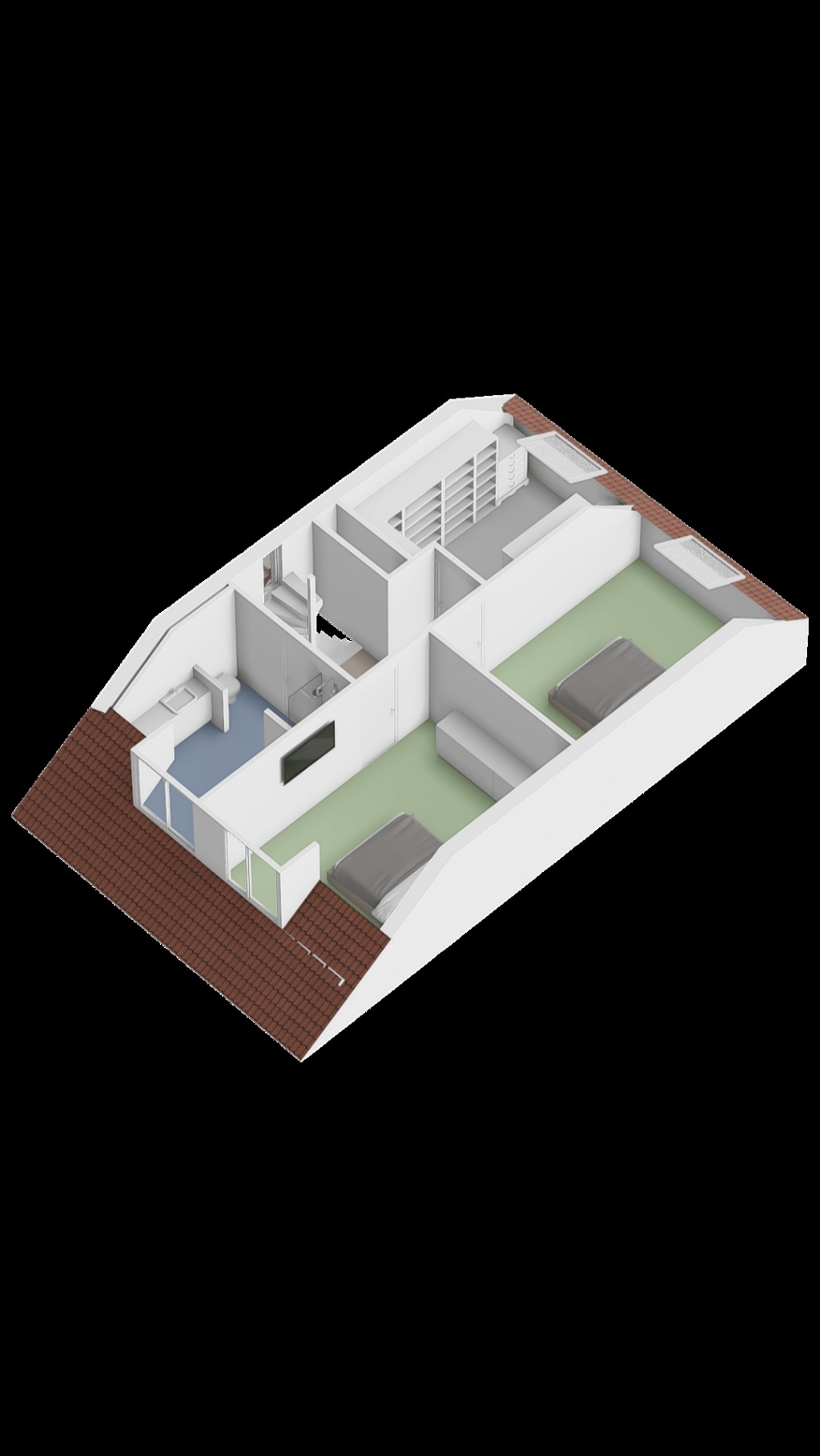 En als klap op de vuurpijl nog een mooie ruime 4e slaapkamer van 16m² met veel opbergruimte in de knieschotten.