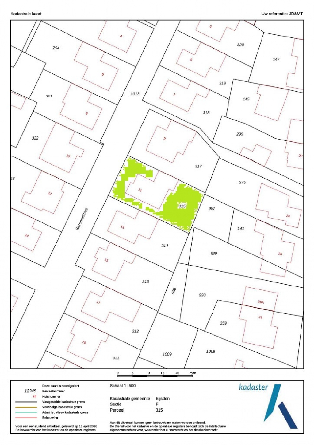 Gemeente Eijsden, sectie F, nummer 315, groot 433m²